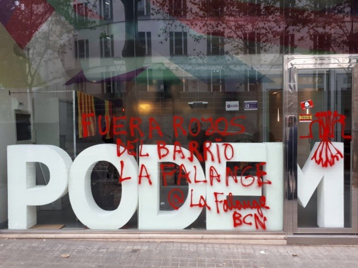 Pintades falangistes a la seu de Podem Catalunya