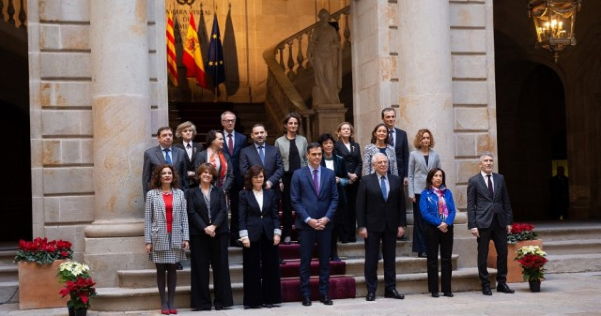 Fetes les fotos, el Govern ha pujat l'escala d'honor cap al Saló Daurat, on se celebra la reunió del Consell de Ministres.
