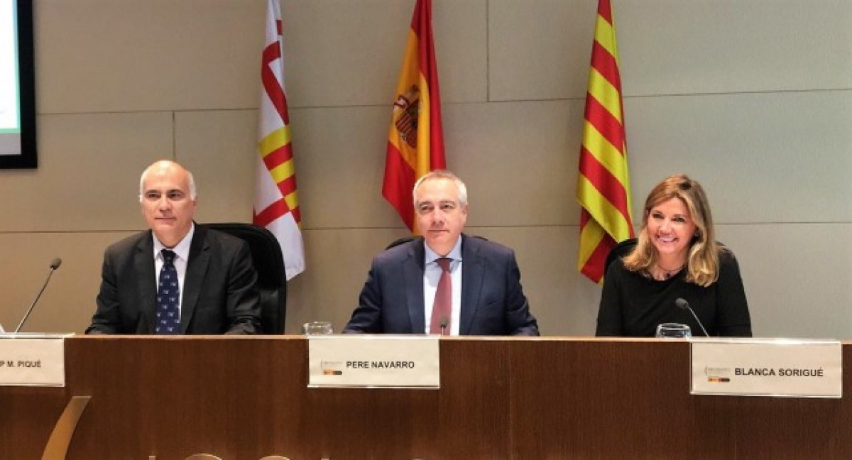 El delegat de l'Estat al Consorci de la Zona Franca de Barcelona (CZFB) i president de eDelivery Barcelona, Pere Navarro, i el president executiu de La Salle Technova Barcelona, Josep Miquel Piqué, han fet balanç de la primera edició de l'acceleradora en una roda de premsa aquest dimarts, amb la directora del consorci, Blanca Sorigué.
