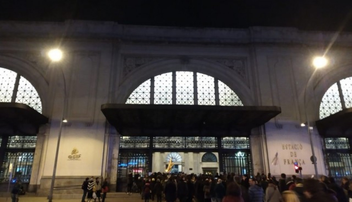 Posteriorment, els concentrats han iniciat una marxa fins a l'estació de França, on unes 150 persones han irromput en les vies, alguns portant banderes estelades.