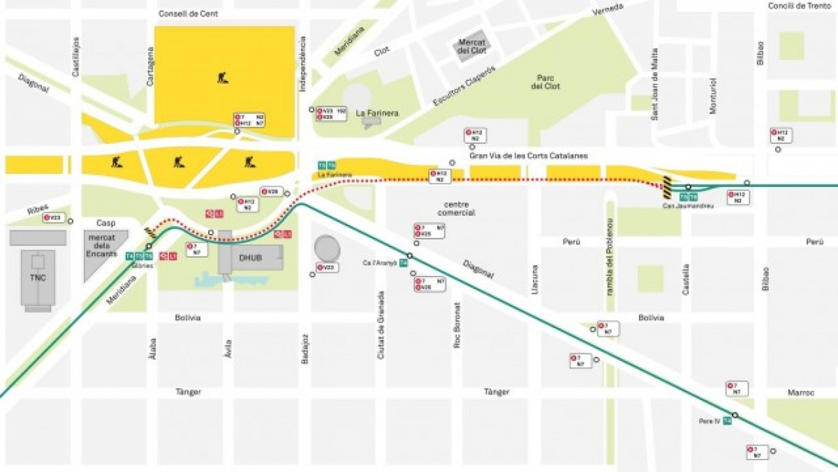 Fins al proper mes d'abril, hi haurà un bus llançadora entre les estacions de Glòries i Can Jaumandreu.
