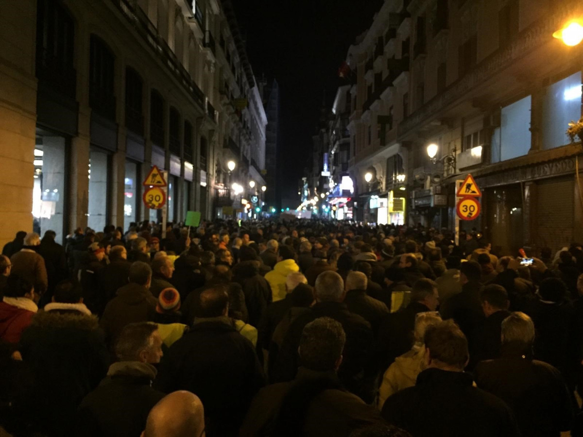 "PP i VTC, la mateixa merda és" o "Mans a dalt, això és un atracament", són alguns dels lemes que coregen els manifestants.