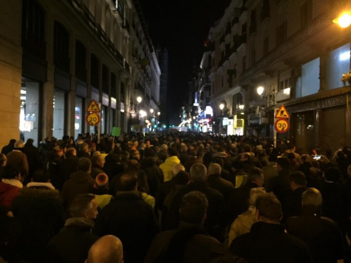 Amb menys presència que ahir dilluns, quan el carrer es va omplir de taxistes després del desallotjament del passeig de la Castellana, on havien passat dues nits, els manifestants, alguns abillats amb armilles grogues, segueixen protestant al crit de 'Garrido, dimissió'.