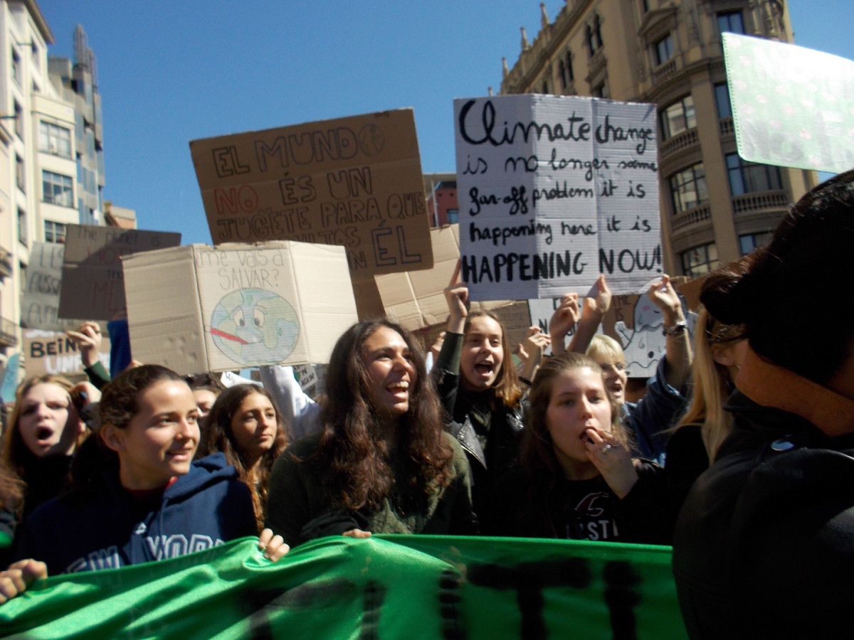 Després del moviment liderat per la jove sueca Greta Thunberg, milers d'estudiants han omplert els carrers de la capital catalana.