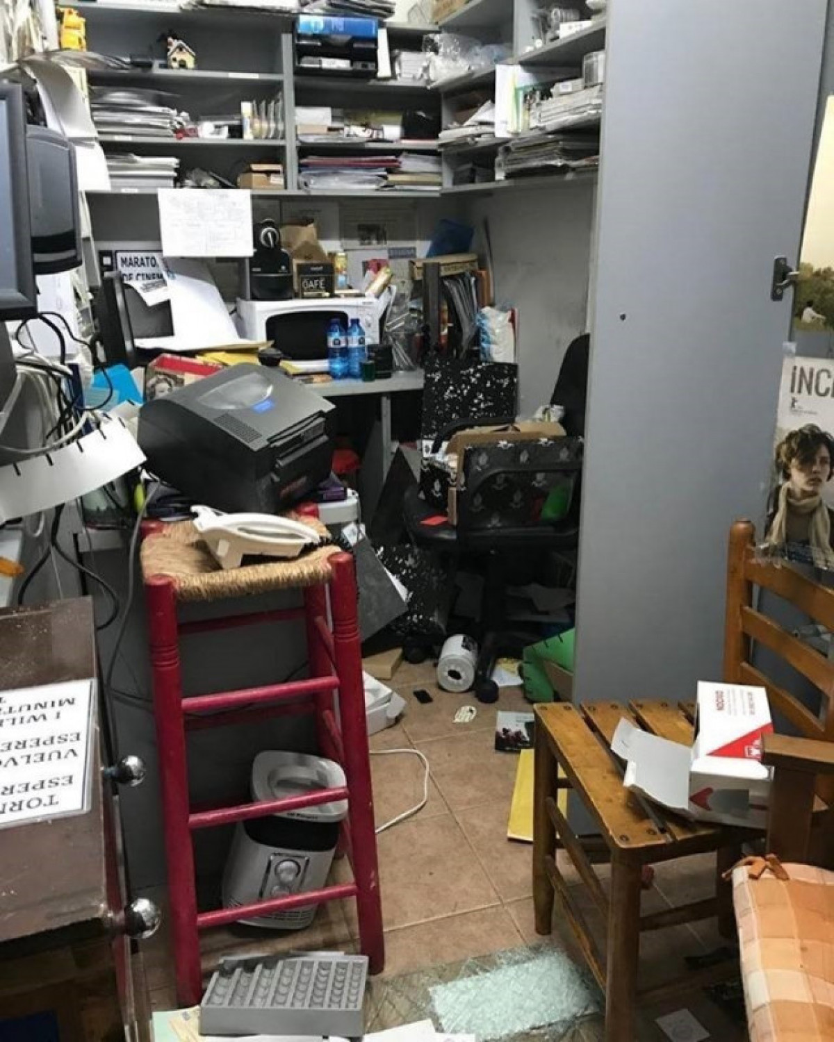 Uns vàndals van robar aquest dissabte la caixa forta del Cinema Maldà de Barcelona, després de trencar el vidre de la taquilla.
