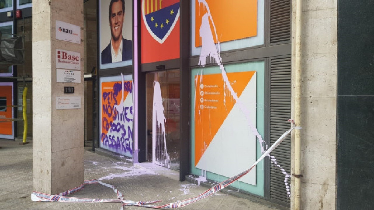 La líder del partit a Catalunya, Inés Arrimadas, ha lamentat que "els feixistes tornen a atacar la seu de Cs a Barcelona trencant vidres, fent pintades i llançant pintura".