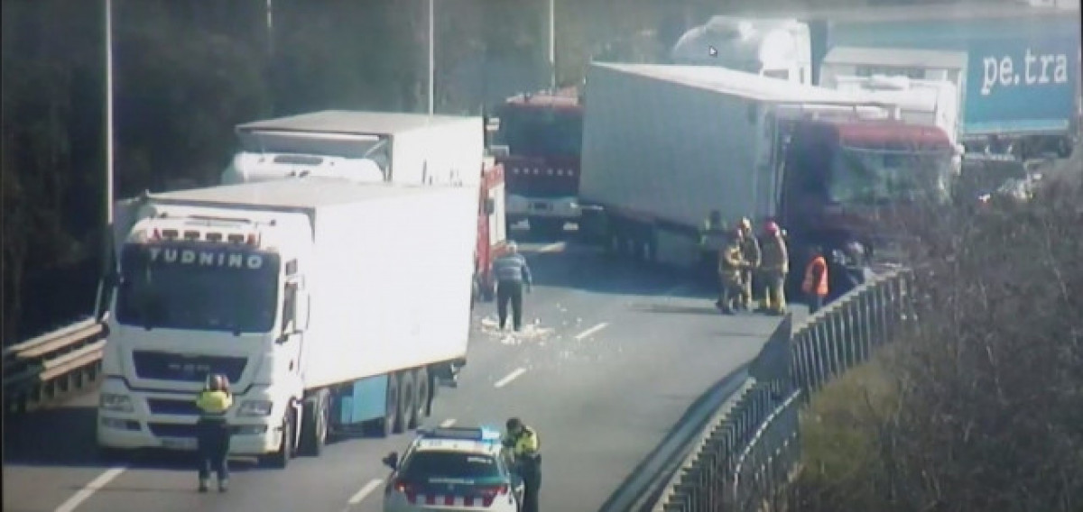 L'AP-7 està tallada a l'altura de Montmeló (Barcelona) a causa d'un accident entre tres camions.