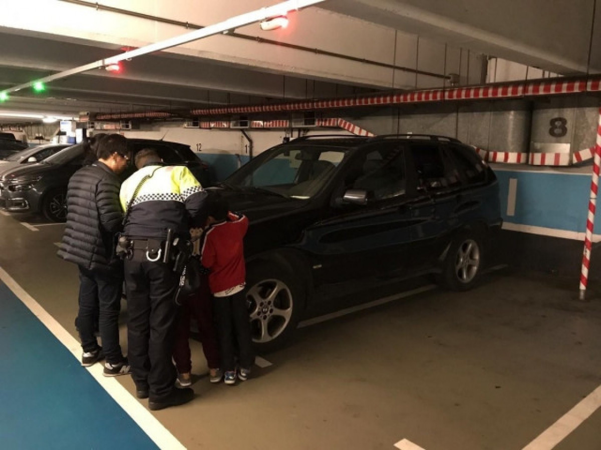 La policia va rebre un avís del vigilant de l'aparcament que hi havia dos menors sols en un cotxe aparcat.