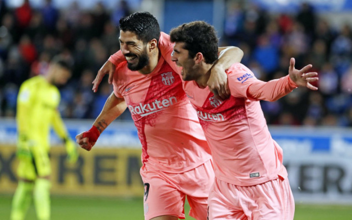 Els blaugranes, amb gols de Carles Aleñá i Luis Suárez, aquest últim de penal, estan preparats ja per cantar victòria i ho podrien fer aquest dimecres veient un entretingut partit entre Atlètic i València -el rival a la final de la Copa del Rei- des de casa. Malgrat les lleugeres rotacions, malgrat que l'Alabès es jugava part d'Europa, Mendizorroza va ser blaugrana.