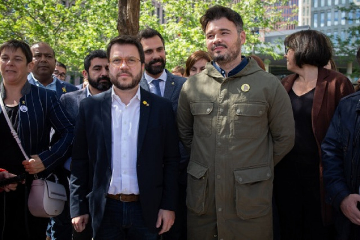 Aragonès i una cinquantena de persones han acudit a la Ciutat de la Justícia en senyal de suport als 15 citats aquest divendres, i, entre els assistents, hi havia el president del Parlament, Roger Torrent; el número dos d'ERC a les generals, Gabriel Rufián; l'alcaldable republicà a Barcelona, Ernest Maragall, o el portaveu de la formació al Congrés, Joan Tardà, entre d'altres membres del partit.