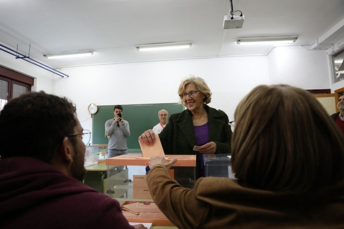 Manuela Carmena, que aquesta tarda seguirà els resultats de les eleccions per la televisió, ha transmès a la premsa que sempre que hi ha eleccions "qualsevol demòcrata se sent molt satisfet", amb emoció i orgull per repetir l'acte de votar. Ha cridat a tenir cura de la democràcia i a complir les obligacions cíviques.
