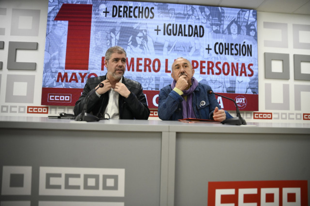 Dia dels Treballadors a tres dies de la celebració d'unes eleccions generals. El secretari general de CCOO, Unai Sordo, i el d'UGT, Pepe Álvarez, afronten la data d'aquest primer de maig amb "un crit unànime" per a un acord d'esquerres, "com més aviat", amb un "programa d'esquerres per poder fer front a les necessitats socials que es viuen al país".