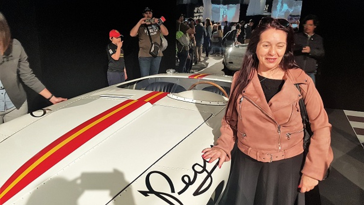 Rafi Pérez, videpresidenta segona del Consell Territorial de l'ONCE Catalunya, es mostrava entusiasmada després d’ajupir-se i posar-se al volant d’un Ferrari Testarrossa.