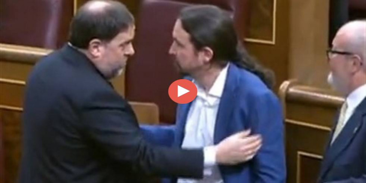 Pablo Iglesias saluda Oriol Junqueras en arribar al Congrés