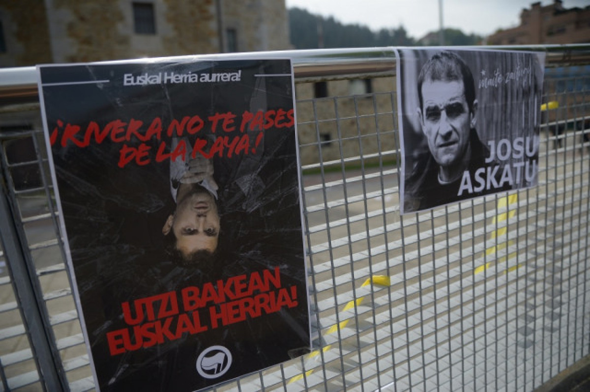 Un fort dispositiu policial custodia la localitat biscaïna d'Ugao-Miraballes. En una tanca, han aparegut dos cartells: un d'Albert Rivera cap per avall, en el qual es llegeix: "No et passis de la ratlla!, i en el qual li s'insten, en basc a 'deixar en pau a Euskal Herria'; i un altre de Urrutikoetxea, cap per amunt, en el qual es demana la seva llibertat: 'T'estimem'.