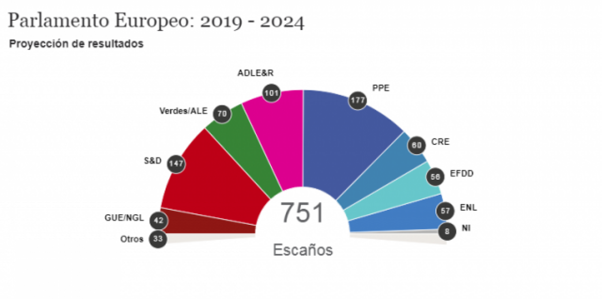 Després d'ells se situarien Els Verds (71), els Conservadors i Reformistes Europeus (58), el grup Europa de les Nacions i de les Llibertats (57) --del qual forma part el UKIP britànic i la Lliga de Matteo Salvini--, el grup Europa de la Llibertat i de la Democràcia Directa (56) --en què s'inscriu la ultradreta francesa de Marine Le Pen--, l'Esquerra Unitària Europea (42) i altres (37).