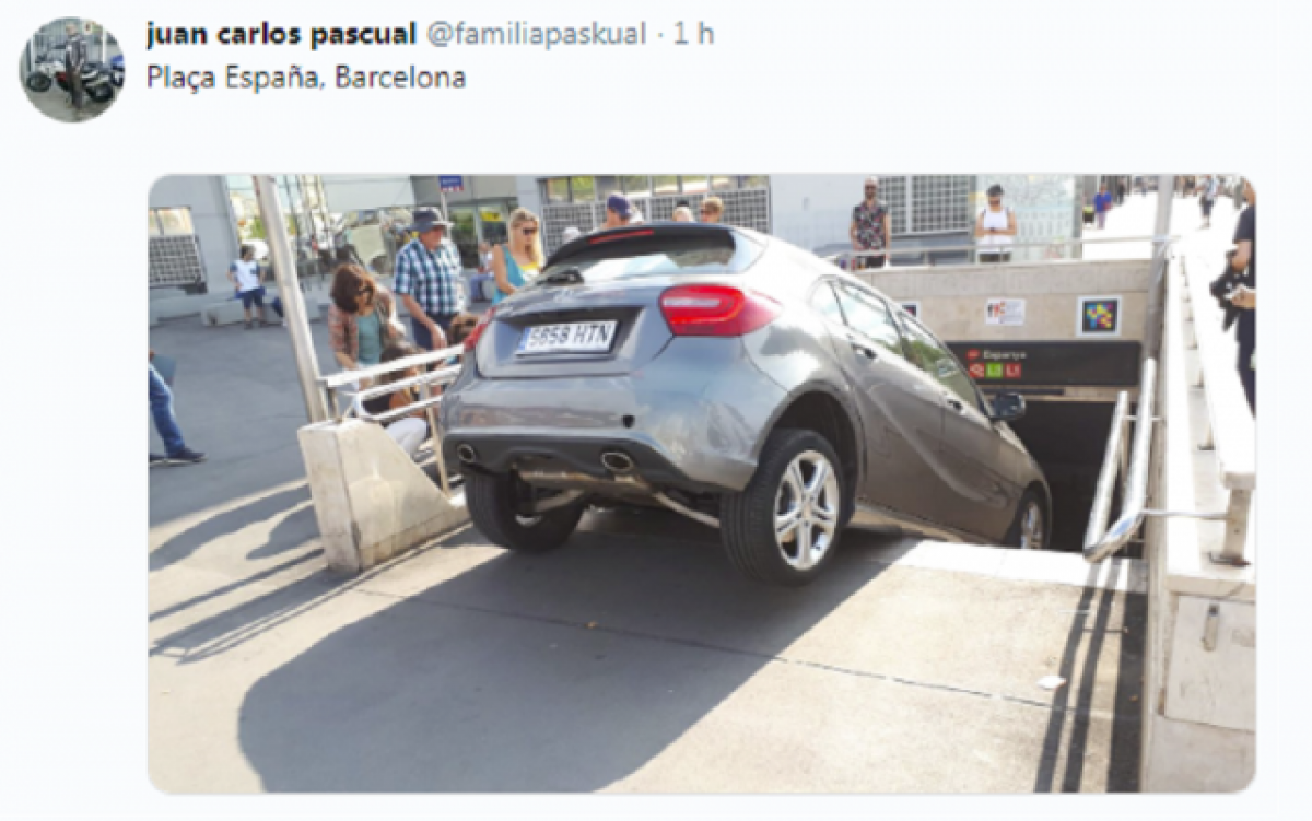 Un cotxe s'ha va quedar atrapat aquest dilluns 15 de juliol per accident en una boca de metro de la plaça Espanya de Barcelona de la Línia 1 i la Línia 3.