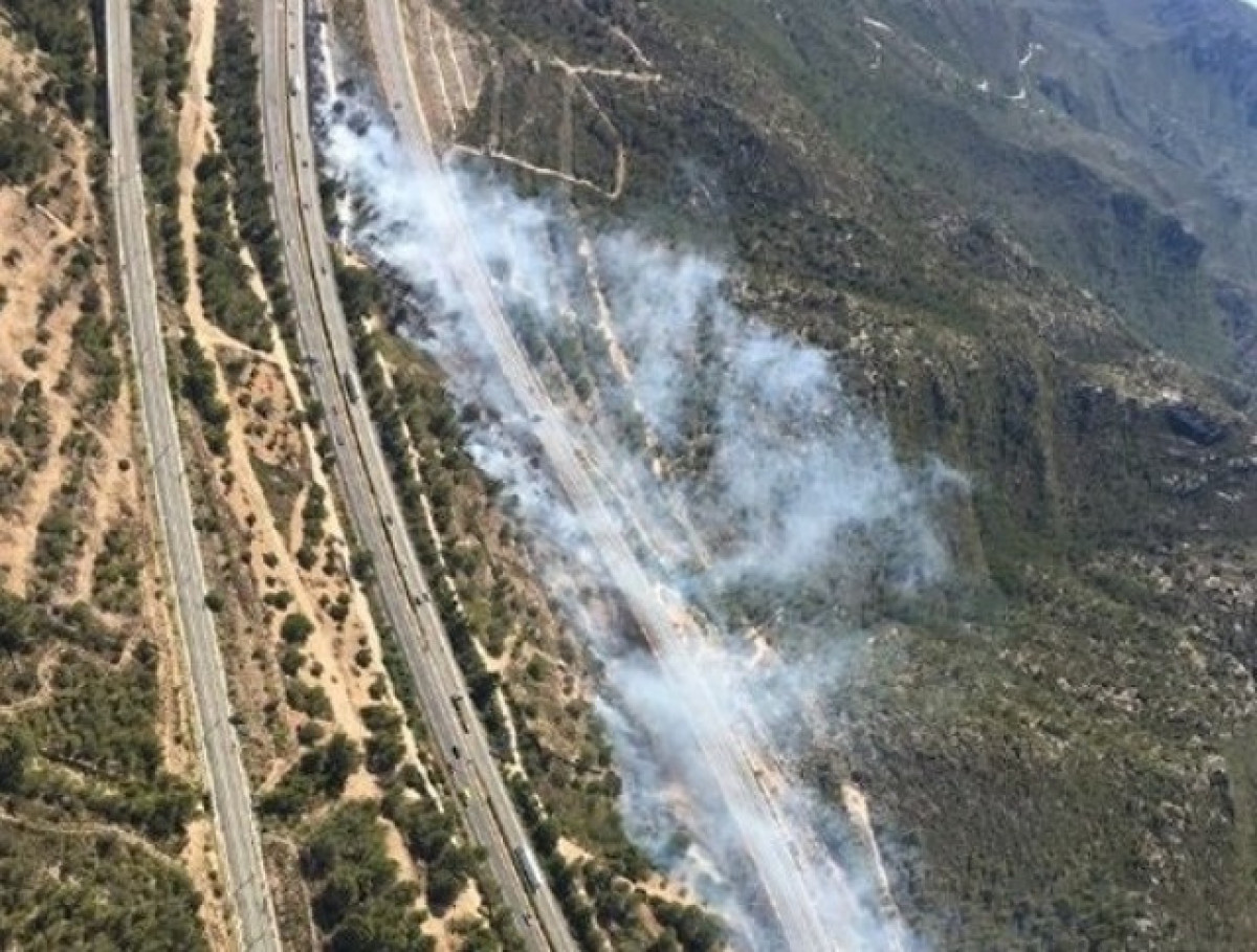 Una desena de dotacions terrestres i cinc mitjans aeris dels Bombers estan treballant en l'extinció del foc en els marges de l'autopista, que s'ha donat per estabilitzat sobre les 16.20 hores.