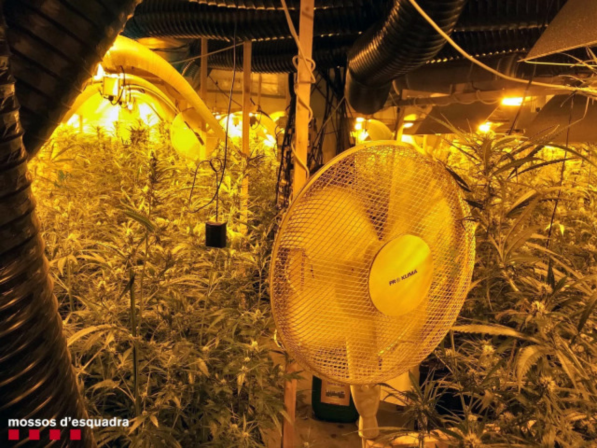 A l'aparcament de la casa s'havia habilitat una instal·lació completa per al cultiu de marihuana a interior amb transformadors, llums ventiladors, aparells humidificadors i filtres d'aire per dissimular olors.