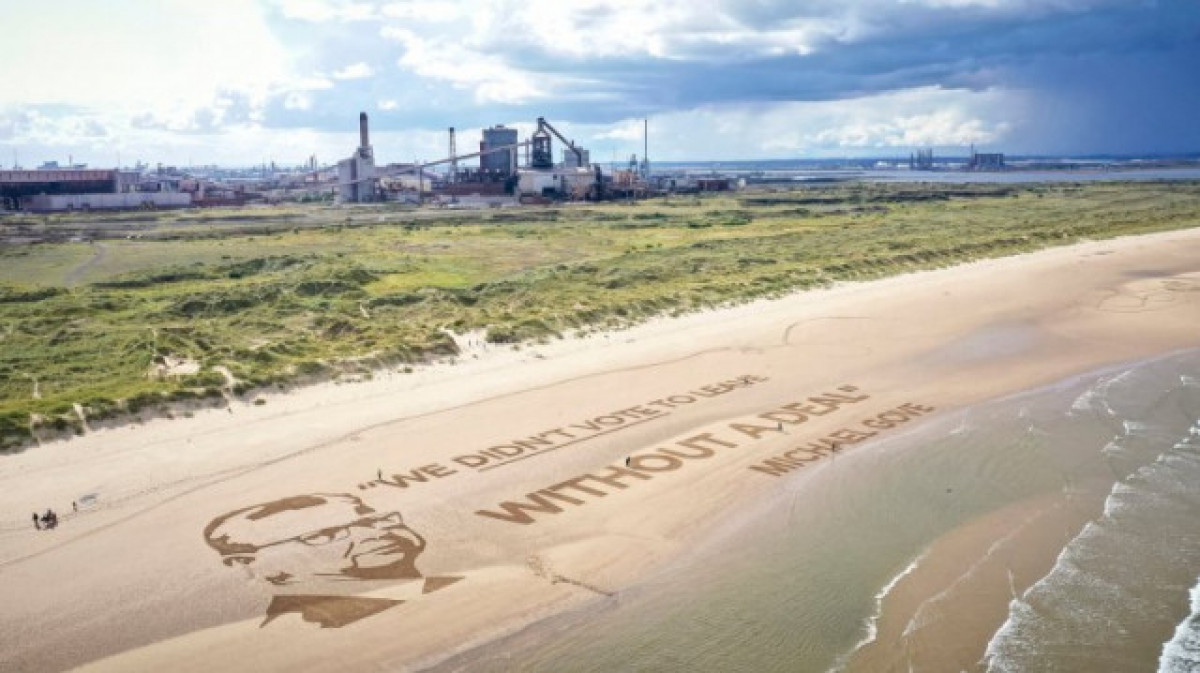 "Ei, líder del 'Vote Out' Michael Gove, recorda vostè que al març va admetre que no hi havia un mandat per a una sortida sense acord perquè ningú va votar a favor en el referèndum de 2016? Pensem que havíem de recordar al país a través d'un retrat de 7.500 metres quadrats a la platja de Redcar visible des de l'espai. No has de donar-nos les gràcies", assenyala el grup a Twitter.