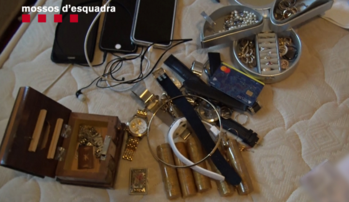 Van trobar més de 200 objectes robats, sobretot joies, rellotges i dispositius electrònics, i els tubs de cua que utilitzaven i diversos jocs de rossinyols.