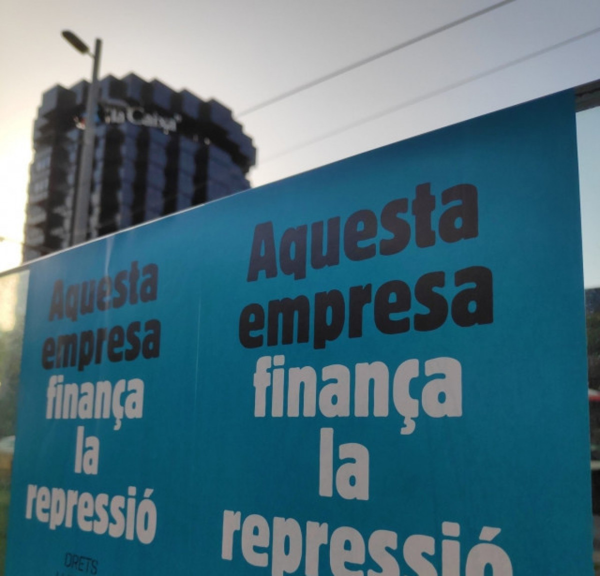En oficines i seus d'aquestes empreses han enganxat cartells amb la frase 'Aquesta empresa finança la repressió', i han avisat: "A tot el territori tenim clar que vosaltres esteu dalt però nosaltres a tot arreu. El present i el futur el decidirem la gent i no l'Ibex 35. Us tornarem a visitar aviat".