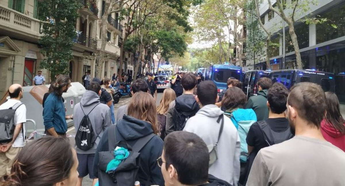 A les sis del matí ha començat el dispositiu policial, amb mitja dotzena de furgonetes de la Brigada Mòbil dels Mossos d'Esquadra, i, a mesura que arribaven els agents, el carrer s'anava omplint també de persones contràries al desnonament d'aquestes famílies.
