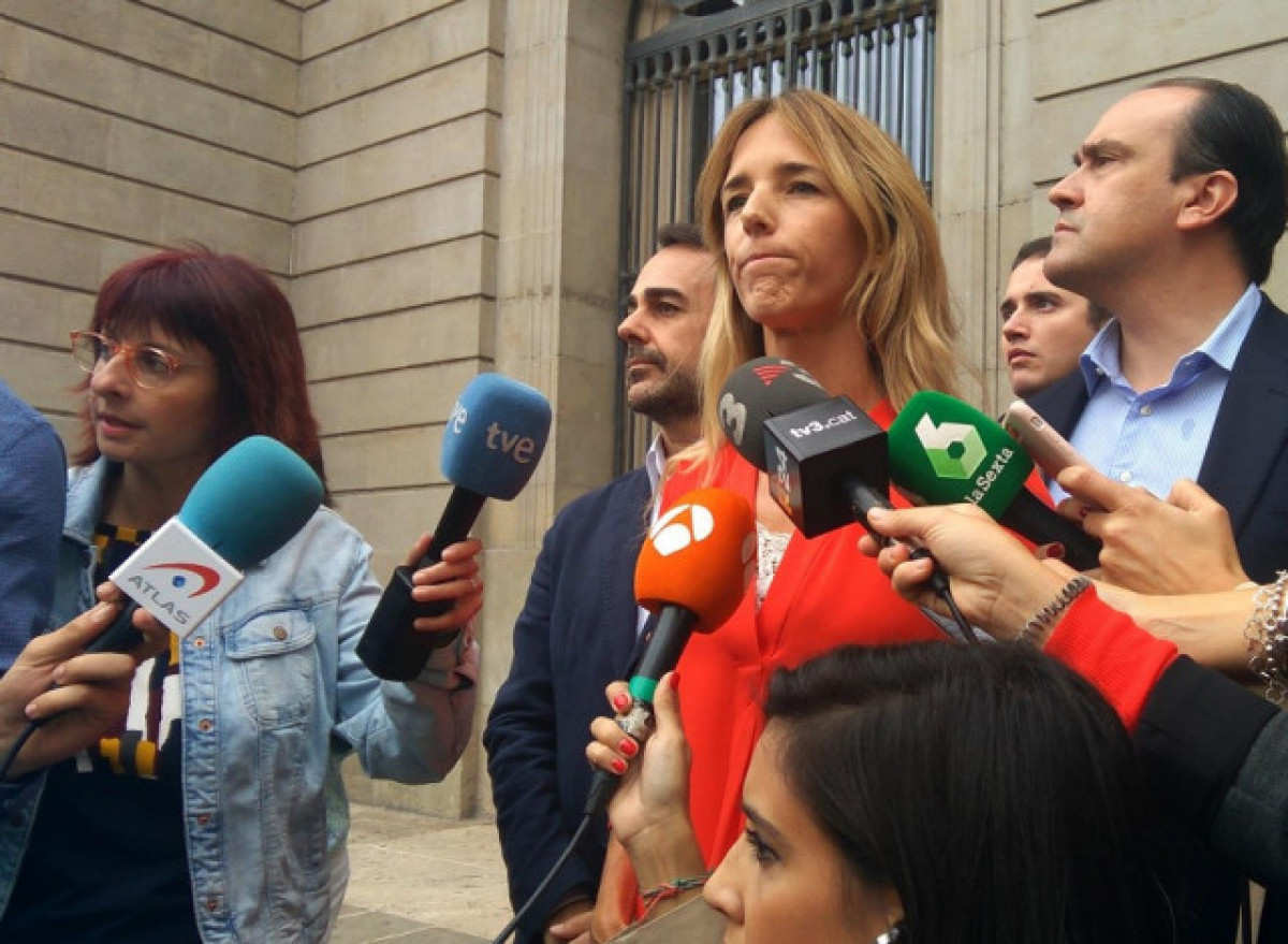 Els manifestants l'han insultat cridant 'puta' i 'mòmia', i han cridat càntics com 'Aquí hi ha els lladres del PP' i 'Els feixistes sou els terroristes' durant les declaracions, després de les que Álvarez de Toledo ha saludat els manifestants amb la mà des de la distància abans d'entrar a l'Ajuntament de la capital catalana.