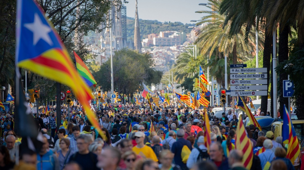 Milers de persones han començat a caminar a les 17.20 hores d'aquest dissabte al llarg del carrer Marina de Barcelona per demanar la llibertat dels presos independentistes condemnats pel Tribunal Suprem. Segons dades de la Guàrdia Urbana, la mobilització ha reunit unes 350.000 persones, si bé l'organització considera que són molts milers més.