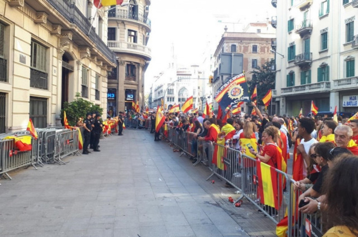 L'endemà dels aldarulls que van començar amb una concentració davant la Prefectura, els concentrats han fet onejar moltes banderes espanyoles i han lliurat algunes als policies, que les han posat en les tanques al costat de la façana.