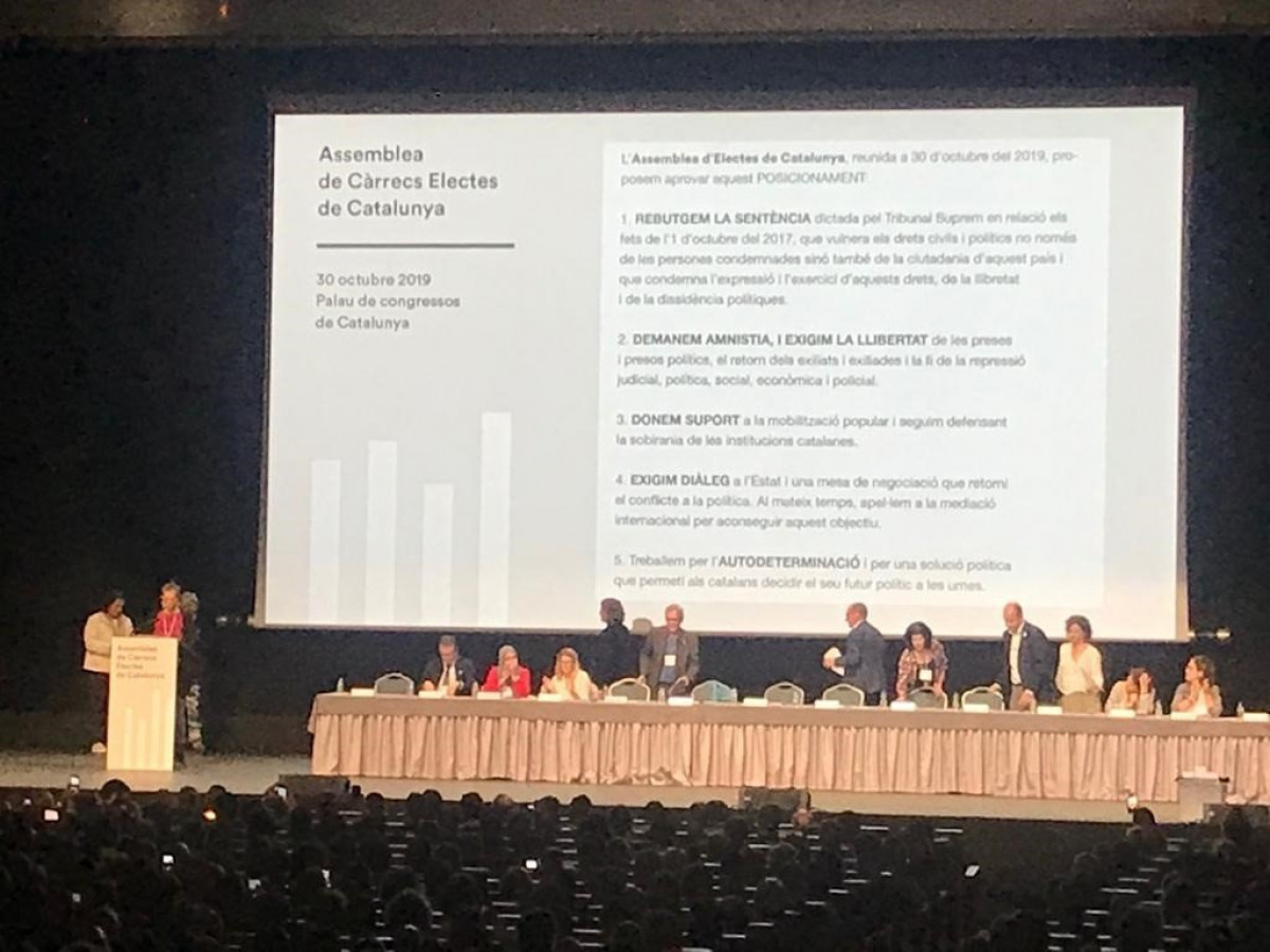 La Assemblea de Càrrecs Electes (ACE) de Catalunya ha aprovat aquest dimecres per unanimitat rebutjar la sentència del Tribunal Suprem (TS) als presos independentistes, per la qual cosa demanen l'amnistia per a tots ells i diàleg a l'Estat per a resoldre el conflicte català.