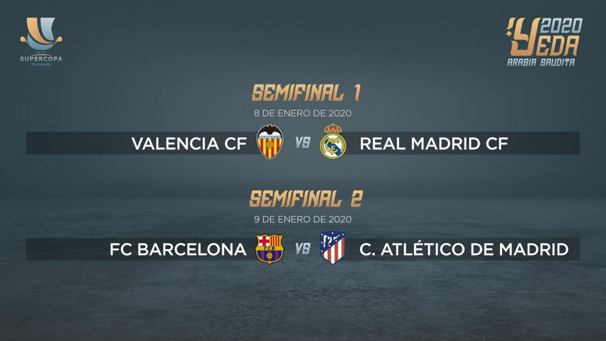 València-Reial Madrid i Barcelona-Atlètic de Madrid seran les dues semifinals de la Supercopa d'Espanya 2020 que es disputarà a principis de gener a Jiddah (Aràbia Saudita), segons va oferir el sorteig celebrat aquest dilluns a la Ciutat del Futbol de Las Rozas (Madrid).