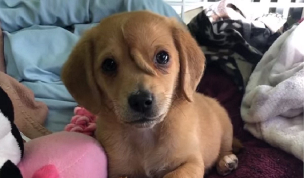 Un centre de cura dels animals de Missouri (EE.UU.) rescata un cadell de 10 setmanes que va ser abandonat per tenir una inusual cua petita enmig del seu cap.