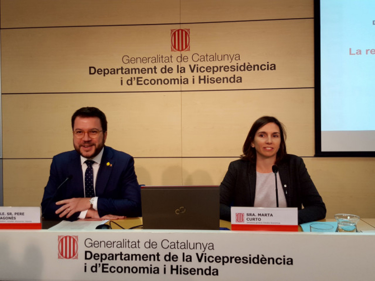 El conseller d'Economia, Pere Aragonès, i la directora general d'Anàlisi Econòmica, Marta Curto
