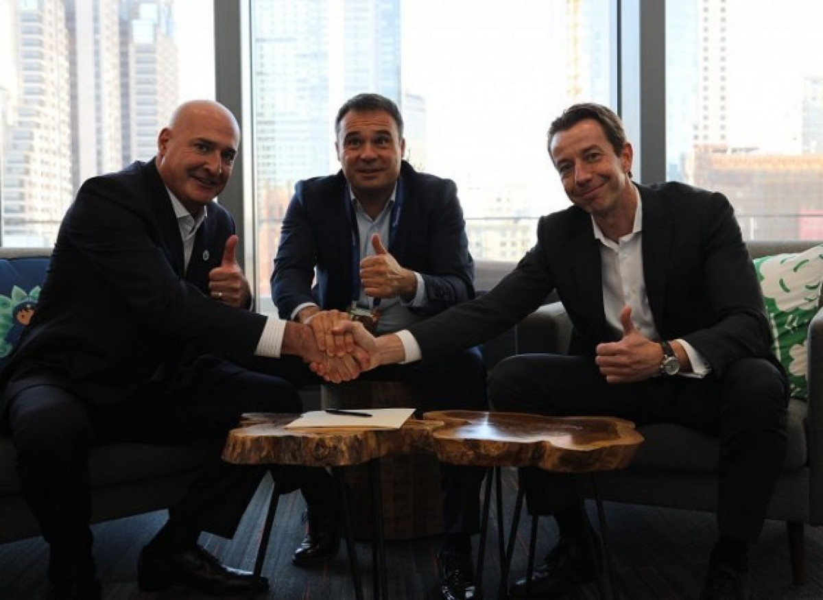 El coconseller delegat de Salesforce, Keith Block; el president executiu de Negoci Digital de CaixaBank, Jordi Nicolau, i el director de Sistemes d'Informació de l'entitat, Pere Nebot, s'han reunit a San Francisco (Estats Units) per signar l'aliança entre les dues organitzacions.