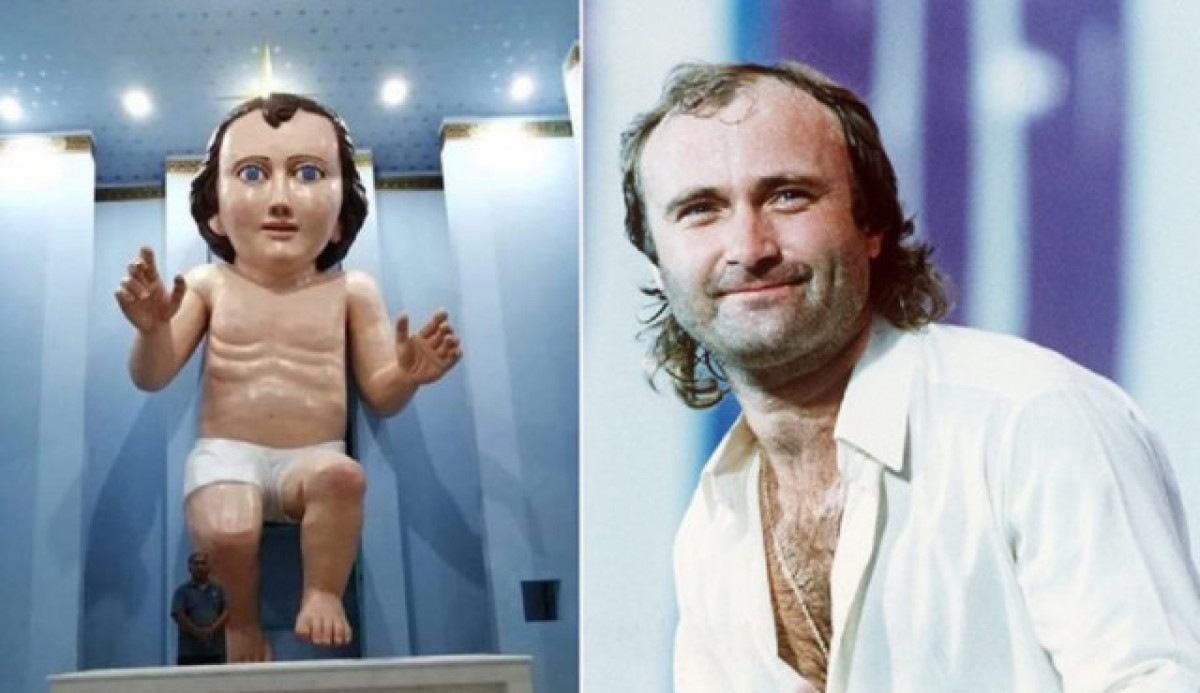 Es tracta d'una escultura de 6,7 metres d'altura i 900 quilograms de pes, i fins i tot pot constituir un nou rècord mundial per una estàtua de Jesús encara nen. Està en una església a Mèxic i ara s'ha revelat, amb la similitud de cara a la del cantant Phil Collins.