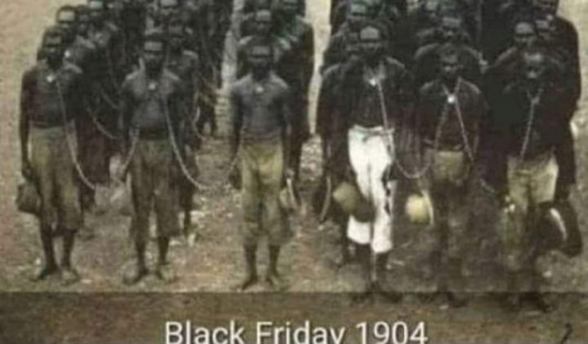 "Aquesta és la trista història del Black Friday. Va ser durant el comerç d'esclaus a Amèrica. Durant el Black Friday, els esclaus eren venuts amb descompte per impulsar l'economia. Per tant, els negres (esclaus que eren d'origen africà) el divendres (la data de la venda l'últim divendres de novembre".