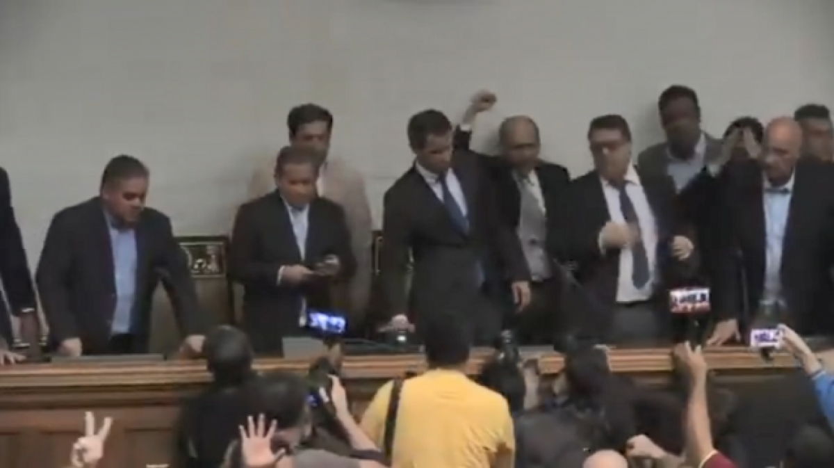 Guaidó i els diputats de l'oposició es van dirigir a parlament quan Luis Parra -triat irregularment diumenge per presidir l'Assemblea Nacional (AN), mentre que a Guaidó se li va impedir entrar a l'edifici i va ser agredit per les forces de seguretat- va presidir una sessió parlamentària.