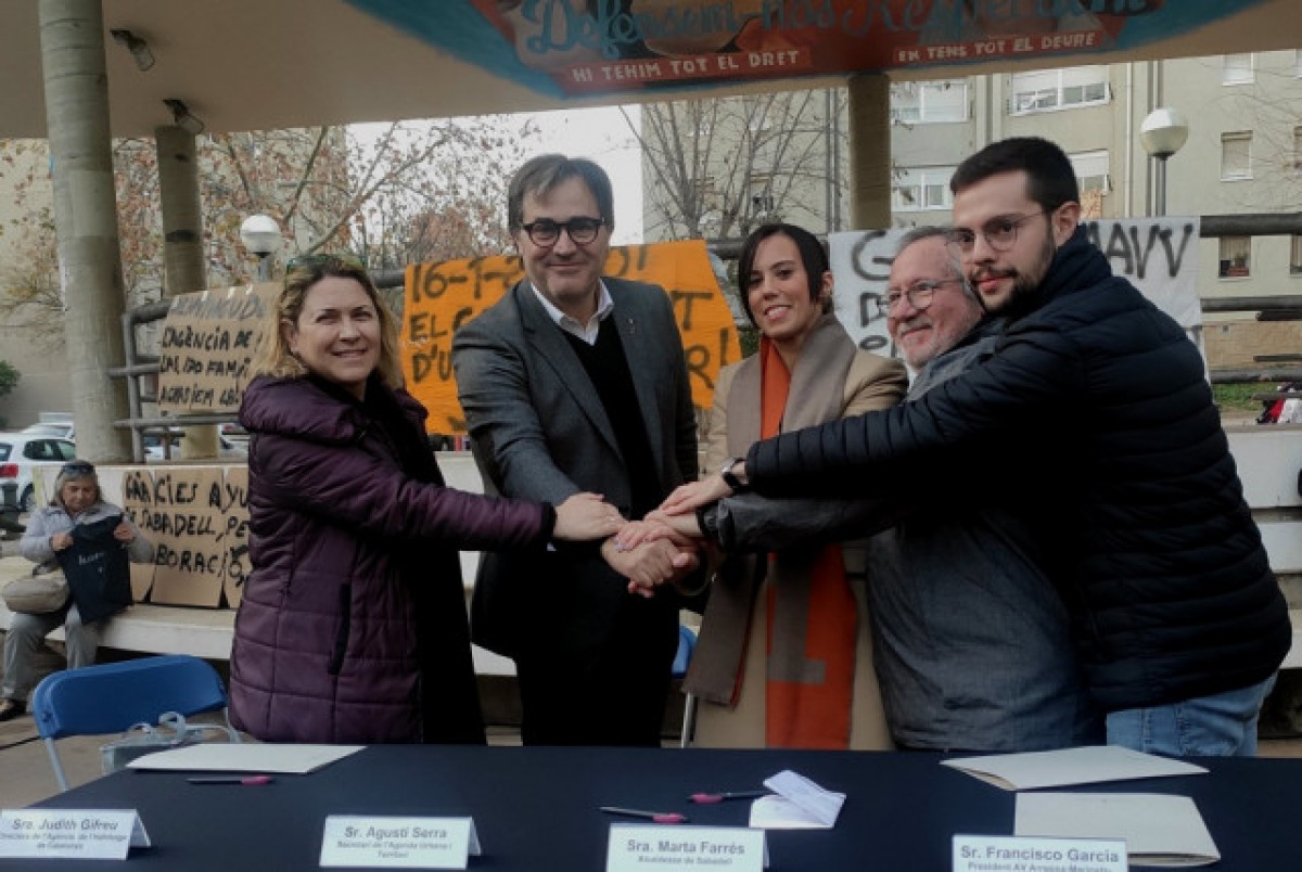 L'Agència de l'Habitatge de Catalunya, l'Ajuntament de Sabadell i l'Associació de Veïns de Merinals han signat aquest dijous un acord pel qual un estudi revisarà si 170 d'habitatges de barri han de ser rehabilitades o esfondrades.