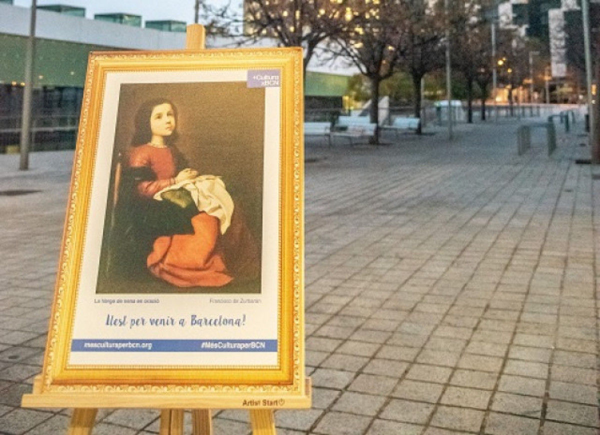 al costat de la llegenda '+CulturaxBCN': 'La verge nena en oració' de Francisco Zurbarán