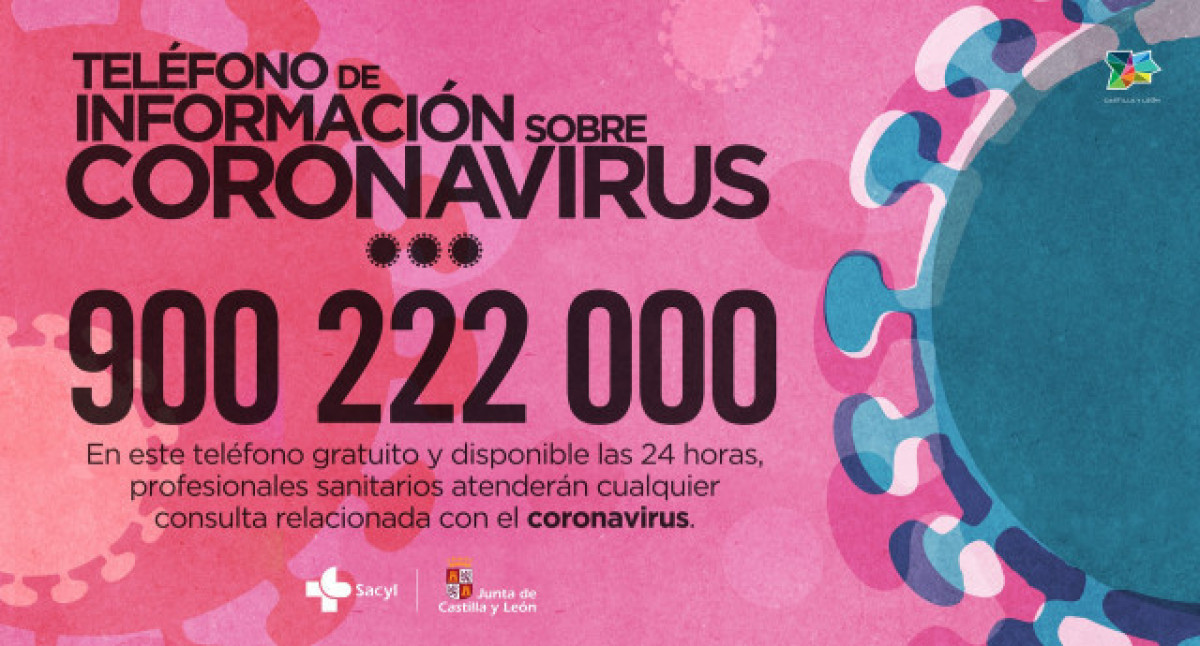 La Junta de Castella i Lleó disposa de telèfon 900 222 000 d'atenció ciutadana sobre el nou coronavirus, accessible de forma gratuïta les 24 hores del dia.