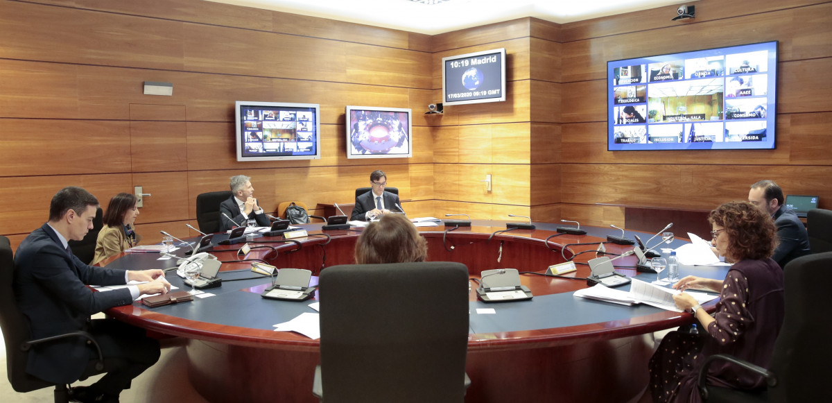 Només el president del Govern, Pedro Sánchez, els quatre ministres designats com a autoritats competents delegades sota l'estat d'alarma (Sanitat, Salvador Illa; Defensa, Margarita Robles; Interior, Fernando Grande-Marlaska, i Transports, José Luis Ábalos), a més de la titular d'Hisenda i ministra portaveu, María Jesús Montero, han assistit a la reunió de manera presencial --encara que guardant entre ells una mínima distància de seguretat-- en les installacions del Departament de Seguretat Nacional en el Complex de la Moncloa. La resta de ministres han participat en la trobada via telemàtica.