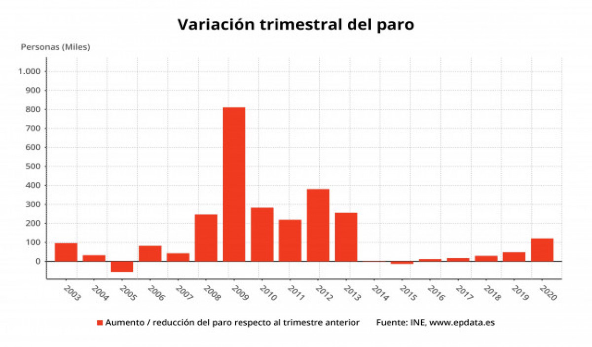 La pujada de la desocupació registrada en el primer trimestre és la més elevada per a aquest període des de l'any 2013, quan la desocupació va pujar en més de 257.200 persones.