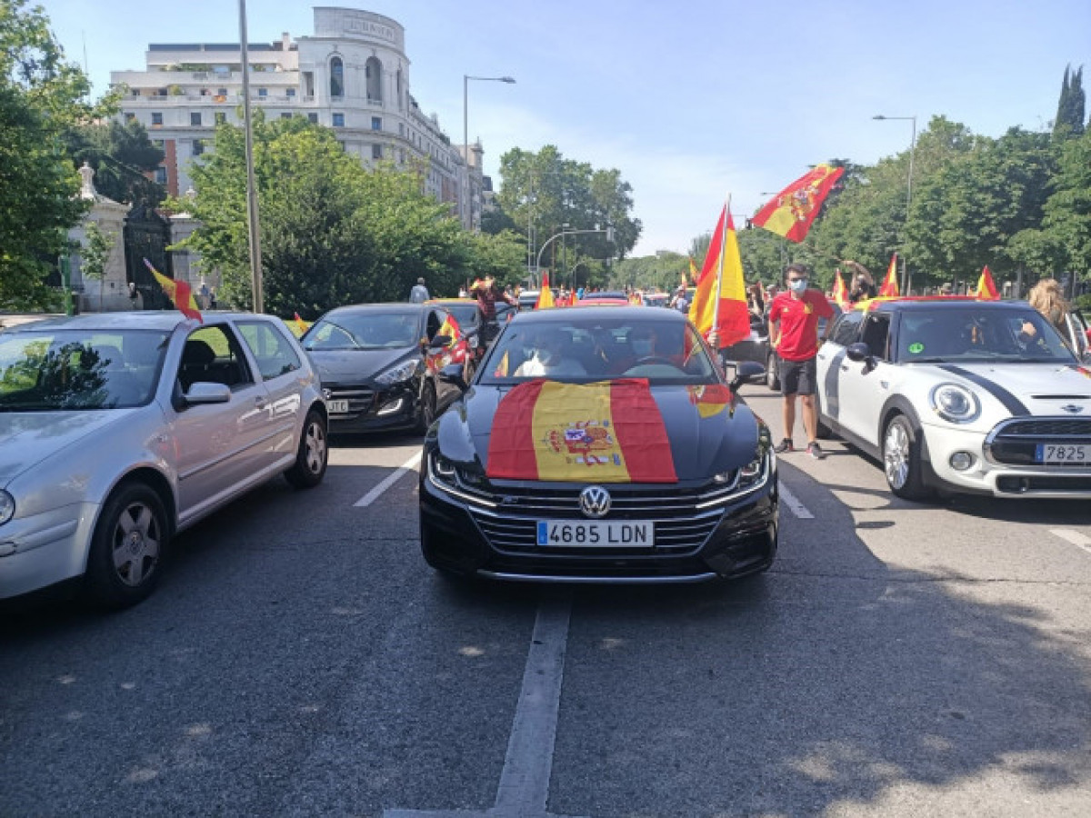 Vox ha mobilitzat en el matí d'aquest dissabte a milers de persones a Madrid que han collapsat amb els seus vehicles adornats a banderes d'Espanya i pancartes de tota mena el centre de la capital per a demanar la "dimissió" del Govern per la seva gestió de la crisi sanitària provocada pel coronavirus. La protesta ha transcorregut en un ambient festiu i amb total normalitat.