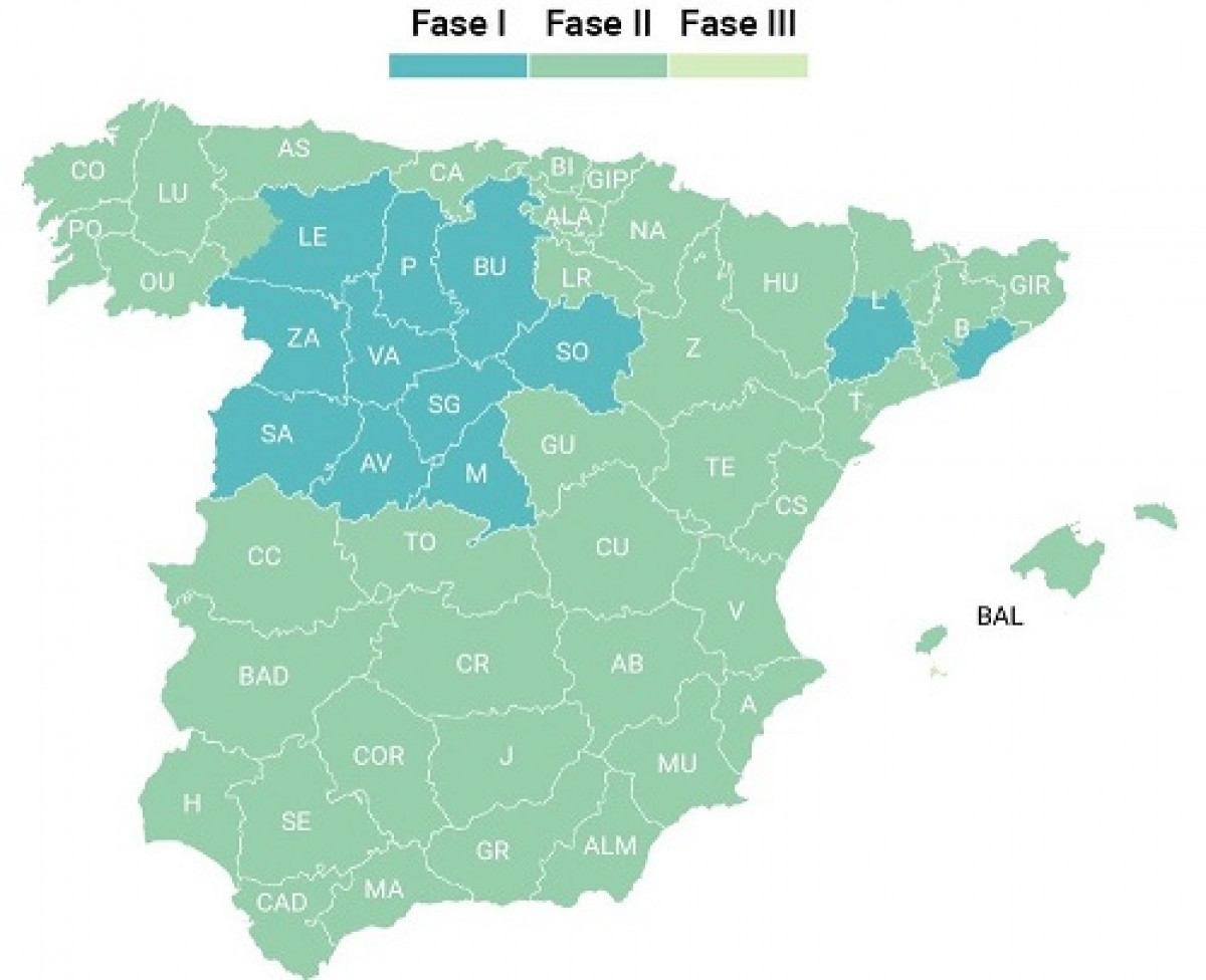 El Ministeri de Sanitat ha aprovat el pas a fase 2 de les següents províncies i àrees sanitàries: