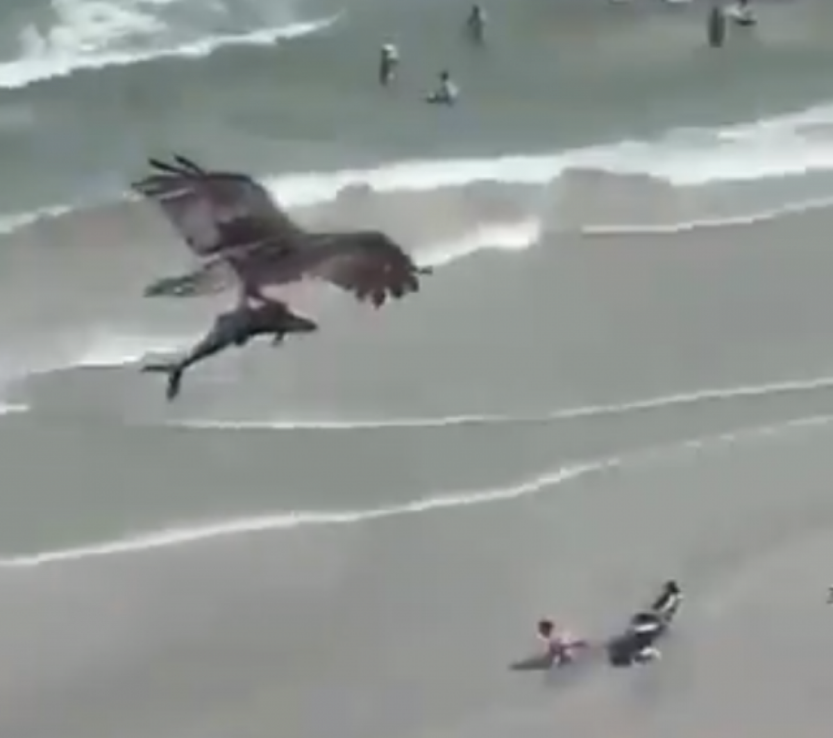 Kelly Burbage, una dona d'Estats Units, va gravar l'instant en què una àguila atrapa amb les seves urpes a un petit tauró i el porta pels aires.