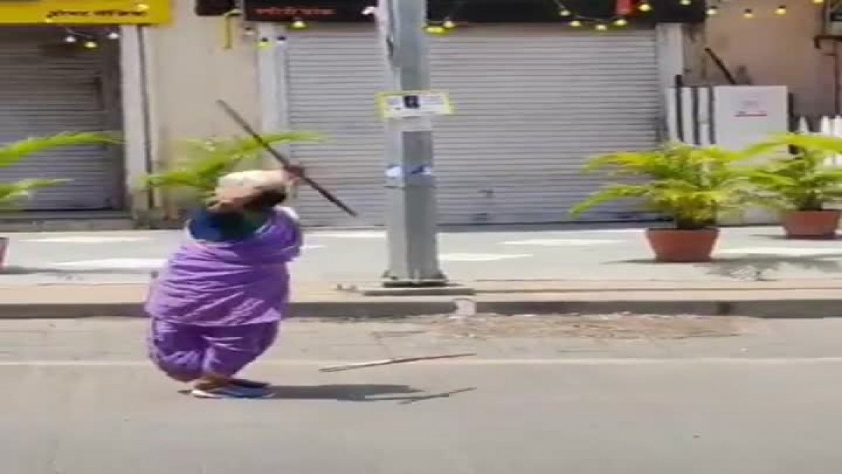Aquest conegut actor indi va gravar a la dona fent acrobàcies amb pals als carrers de Pune. L'anciana, anomenada Shanta Pawar, estava entretenint als transeünts practicant unes arts marcials conegudes com Lathi Khati.