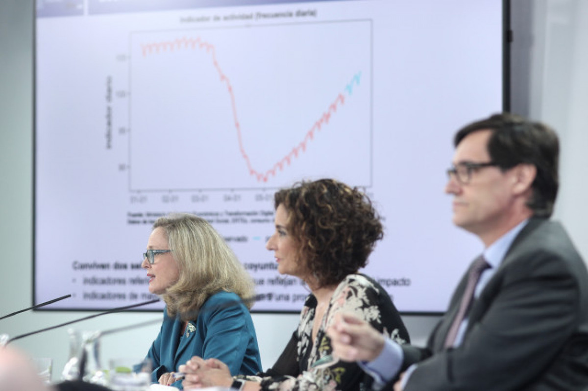 Calviño ha defensat que des del primer moment el Govern ha implementat un full de ruta "clara i coherent" amb les mesures de política econòmica de tall social, acompanyant a la resposta del pla sanitari, amb un primer pla de xoc per a la resistència de la economia i evitar un escenari "altament disruptiu", protegint les rendes.