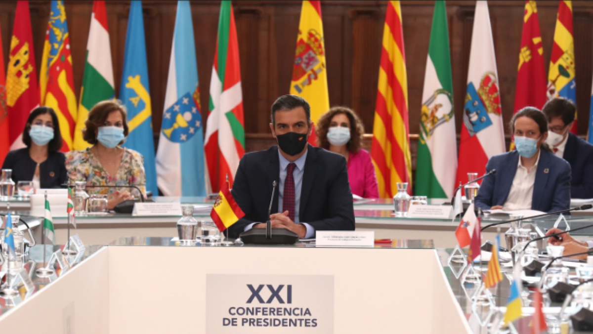 El president de Govern, Pedro Sánchez, ha informat aquest divendres als líders autonòmics durant la Conferència de Presidents que a la primavera de 2021 es podria començar a rebre prefinançament pel 10% dels fons fruit de l'Acord de Recuperació Econòmica arribat a la Unió Europea.