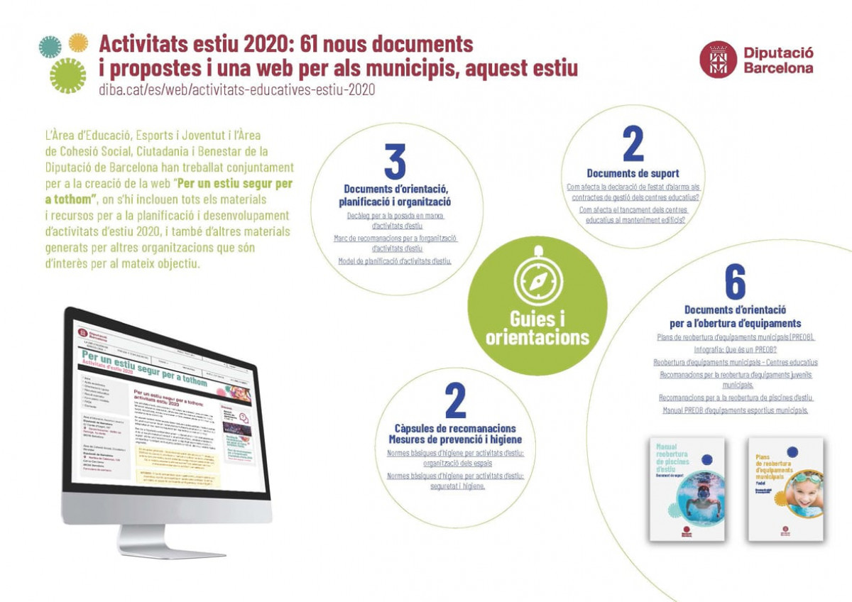 La Diputació de Barcelona, amb la voluntat de continuar garantint l'organització aquest estiu d'activitats de lleure segures, ha editat dues infografies sota el títol 61 nous documents i propostes i una web per als municipis